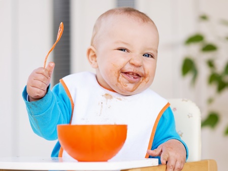 - Die Kinder dürfen von Anfang an selbständig essen. Die Kinder, die noch nicht alleine satt werden können, werden von uns natürlich gefüttert.
